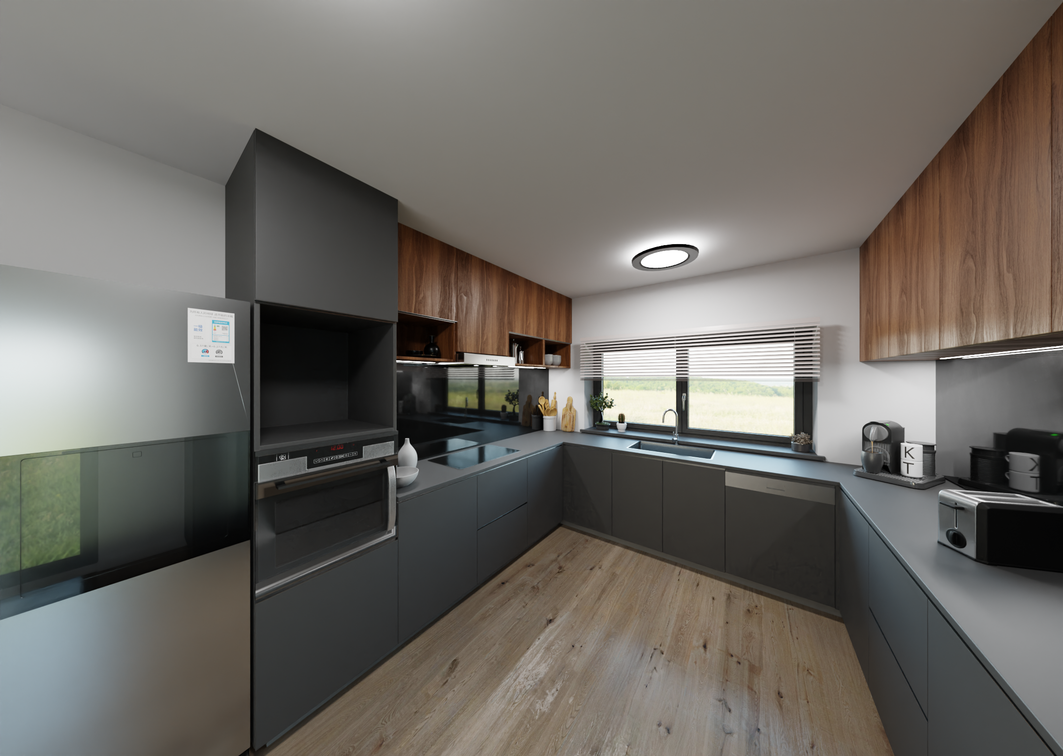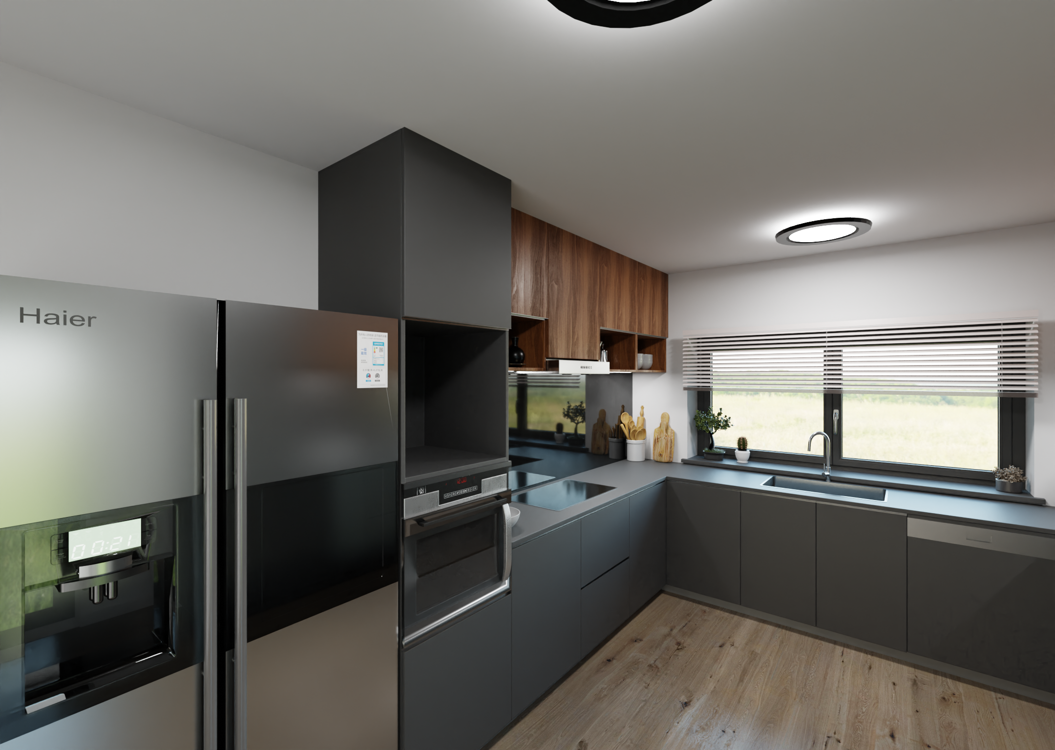 Creating a rendering like this involves several steps within the 3D software: